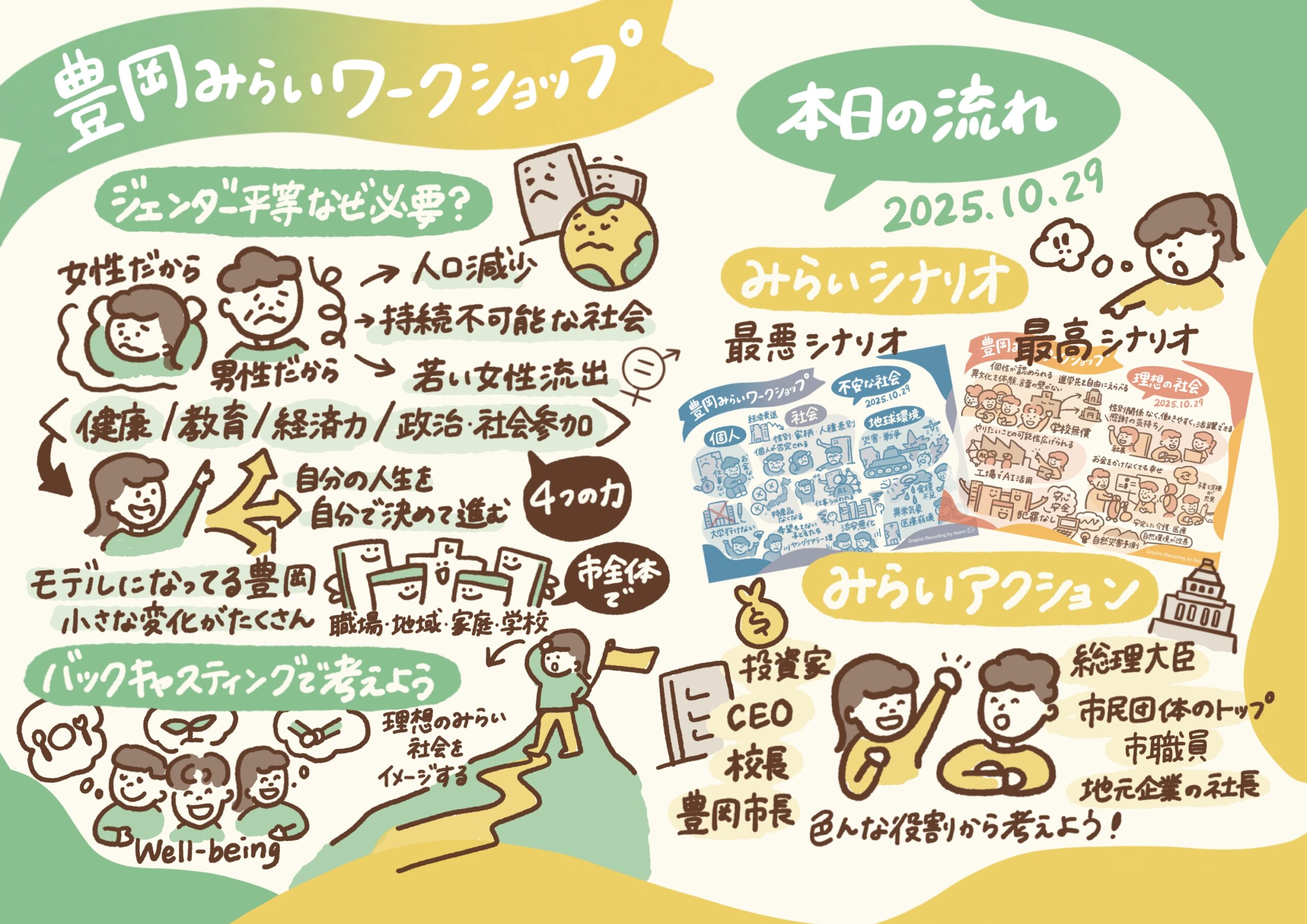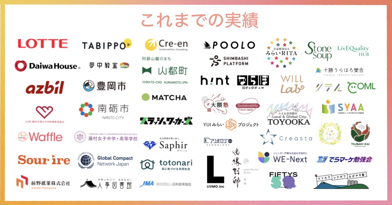 企業/地方自治体/個人/まちづくり/ワークショップ/講演会など、様々な場所でご活用いただいております。ご依頼の目的に応じて、最適なグラレコを提案いたします。