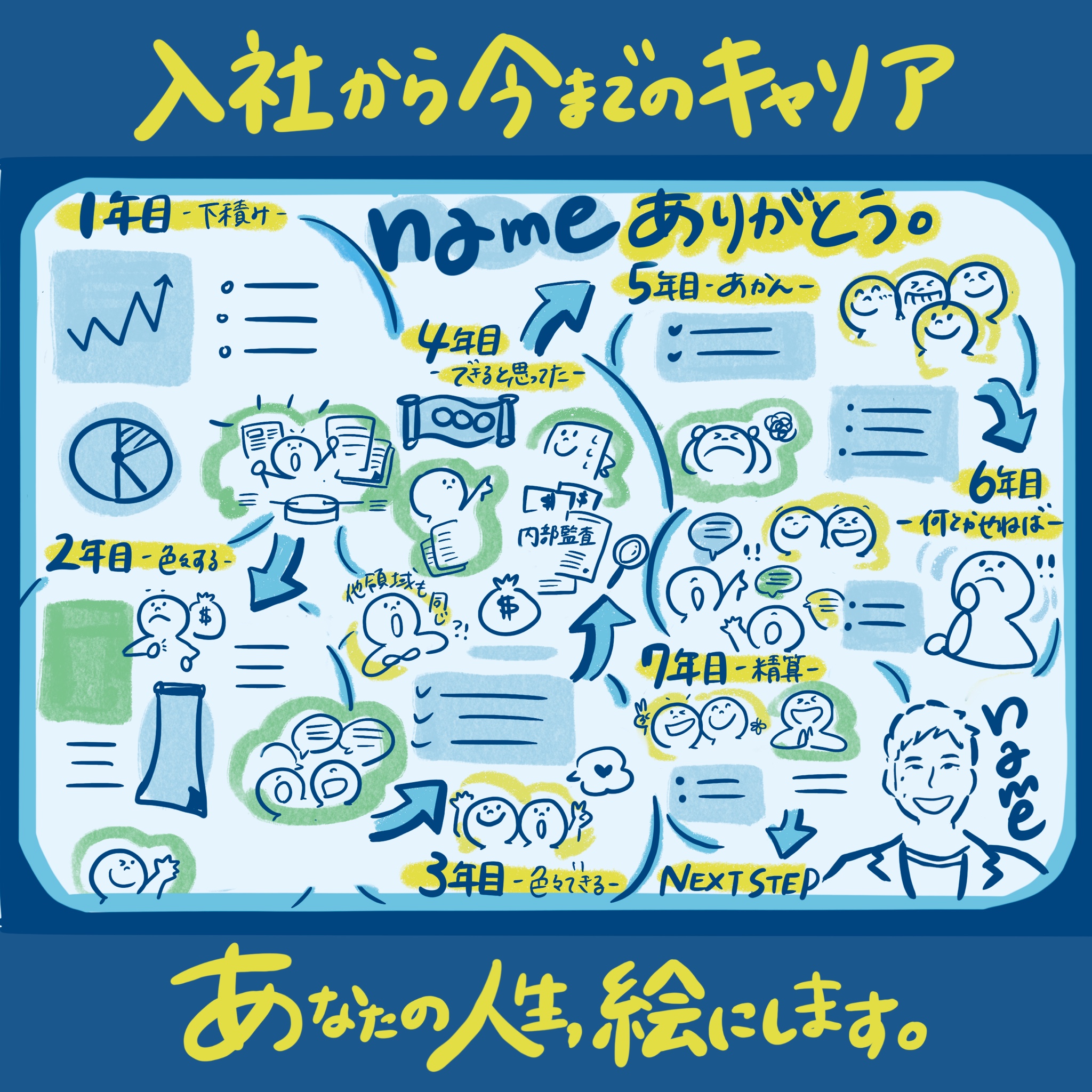 特に、人生やキャリアに関するグラレコが得意です。旅や地方創生、企業文化に関するグラレコもお任せください。内容や形式は、お客さまのご要望に応じてご作成します!